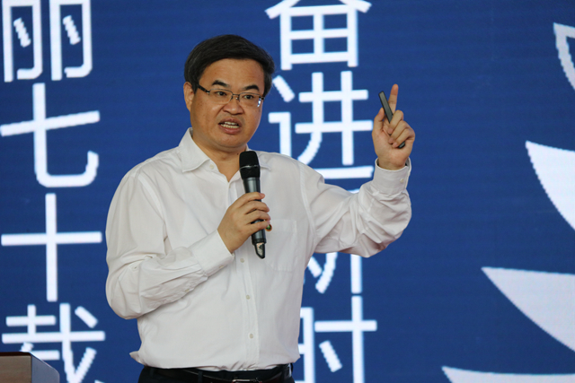 7月29日,学校组织国庆70周年庆祝活动学生誓师大会,赵长禄为各大队授旗,并为广大参与学生作动员讲话。他讲述了在历次国庆庆典中,北理工师生从不缺席,用自己的智慧和汗水一次又一次圆满完成了各项任务的光荣事迹,勉励同学们要坚定理想信念、厚植家国情怀、磨炼意志品质、担负起党和国家赋予的时代使命。